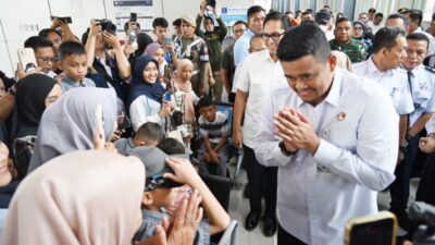 TINJAU : Gubernur Sumatera Utara (Sumut) Muhammad Bobby Nasution bersama Forkopimda Sumut melakukan Peninjauan Arus…
