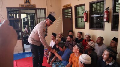 TAKJIL: Kapolrestabes Medan, Kombes Pol Gidion Arif Setyawan saat membagikan takjil pada tahanan. MEDAN –…