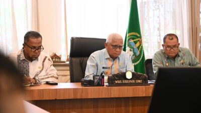 RAPAT: Wakil Gubernur Sumatera Utara Surya didampingi Asisten Administrasi Umum Muhammad Suib dan Kepala Kepala…