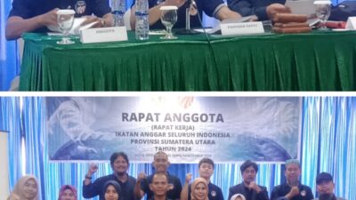 RAKER: Darmawan Siagian bersama pengurus saat memimpin raker (atas). Bawah, pengurus dan peserta raker foto…