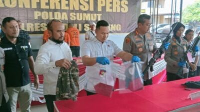 PAPARKAN: Kapolresta Deliserdang Pol Hendria Lesmana SIK didampingi Kasat Reskrim, Kompol Riski Akbar saat menunjukkan…