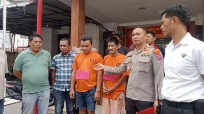 AMANKAN: Kapolsek Medan Area, Kompol Hendri Aritonang didampingi Kanit Reskrim Iptu Poltak Tambunan saat paparan…