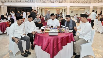 BUKA PUASA: Gubernur Sumatera Utara (Sumut) Muhammad Bobby Nasution didampingi Wakil Gubernur Sumut Surya buka…