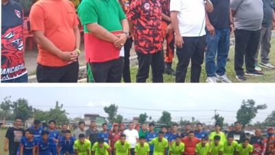 JUNJUNG : Ketua MPC PP Deliserdang, Junaidi saat meminta pemain menjunjung sportifitas (atas). Dan bawah…