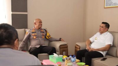 BERBINCANG: Pjs Bupati Pakpak Bharat, Dr. Naslindo Sirait, SE, MM berbincang dengan Kapolres Pakpak Bharat,…