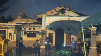 TERBAKAR: Rumah mantan Kadis Perikanan Sumut Oka Zulkarnain di Patumbak terbakar. MEDAN – Rumah Oka…