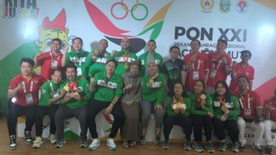 Para atlet dan pengurus. MEDAN – Tuan rumah Sumatera Utara tampil sebagai juara umum cabor…
