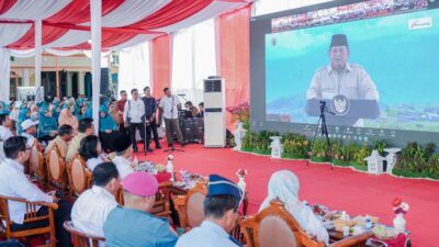 IST/mediamasanews.com SAPA: Presiden Prabowo Subianto menyapa Gubernur Sumatera Utara Bobby Afif Nasution saat peresmian secara…