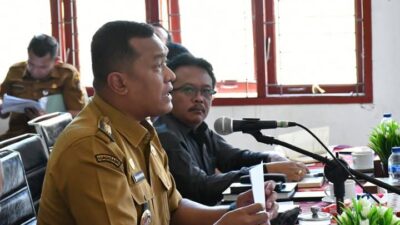 PIMPIN: Bupati Toba, Effendi Sintong Panangian Napitupulu saat memimpin rapat Forkopimda bersama perangkat daerah. (ist)…