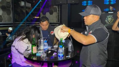 RAZIA: Tim Gabungan Polrestabes Medan saat tes urine pengunjung THM. MEDAN – Tim Gabungan Polrestabes…