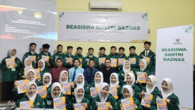 Direktur MTIA, Muhammad Rizky Ananda (tengah) berfoto bersama Santri dan Fatayat yang menerima beasiswa. LAMPUNG…