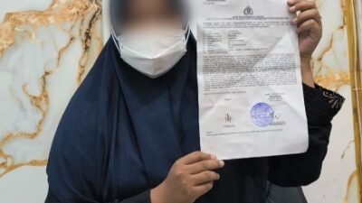 LAPOR: UP menunjukkan surat laporan kepolisian yang dibuat di Polsek Medan Baru, Jum’at (27/2/2026). (ist)…