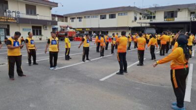SENAM BERSAMA: Polrestabes Medan menggelar olahraga senam bersama di Halaman Upacara Mapolrestabes Medan, Jalan HM…