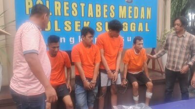 DITANGKAP: Keempat tersangka yang diamankan petugas. (ist) MEDAN – Sindikat pencurian dengan pemberatan (curat) yang…
