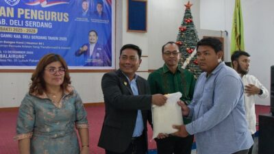 HADIRI: Wabup Deli Serdang, Lom Lom Suwondo SS saat menghadiri pelantikan Pengurus DPC GAMKI Deli…