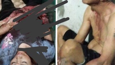TEWAS: Korban tewas dengan belasan luka tikaman (kiri). Dan foto kanan, tersangka yang berhasil diamankan….