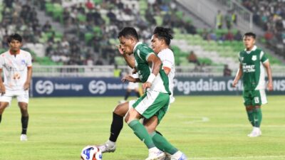 BEREBUT : Pemain PSMS Medan berebut bola dengan pemain Sumsel United. (ist) MEDAN – PSMS…