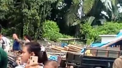 BONGKAR : Tim gabungan saat membongkar lapak pedagang kaki Lima Simpang Kayu Besar. (ist) DELI…