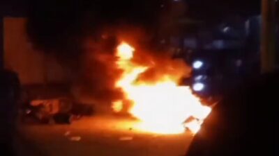 BAKAR: Kereta yang dibakar. BELAWAN – Aksi pemberantasan narkoba terhambat akibat saat dilakukan pengrebekan di…