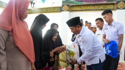 BERIKAN: Wabup Deli Serdang, Lom Lom Suwondo SS memberikan bantuan sembako kepada kaum duafa dan…